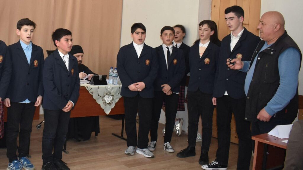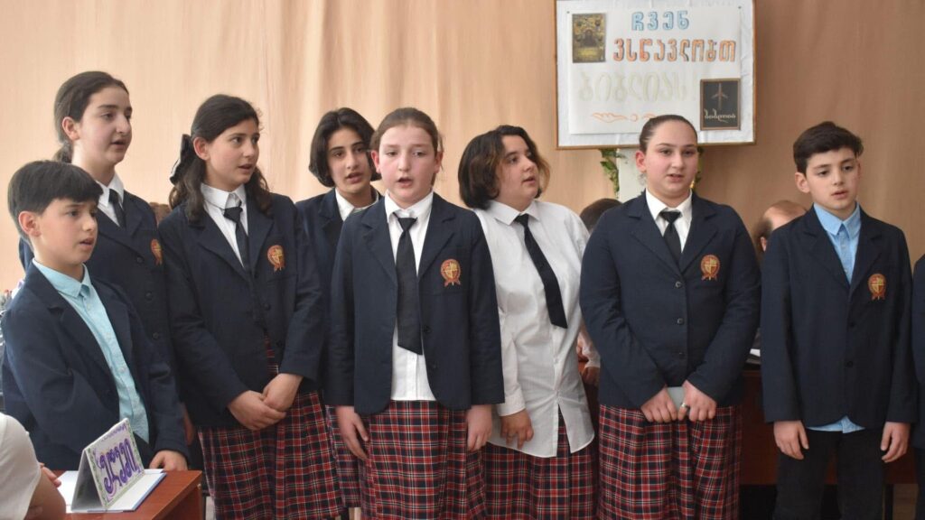 🎶 ასევე, გიმნაზიის მოსწავლებიი მაყურებლის წინაშე წარსდგნენ სხვადასხვა საგალობლებით და სიმღერებით.