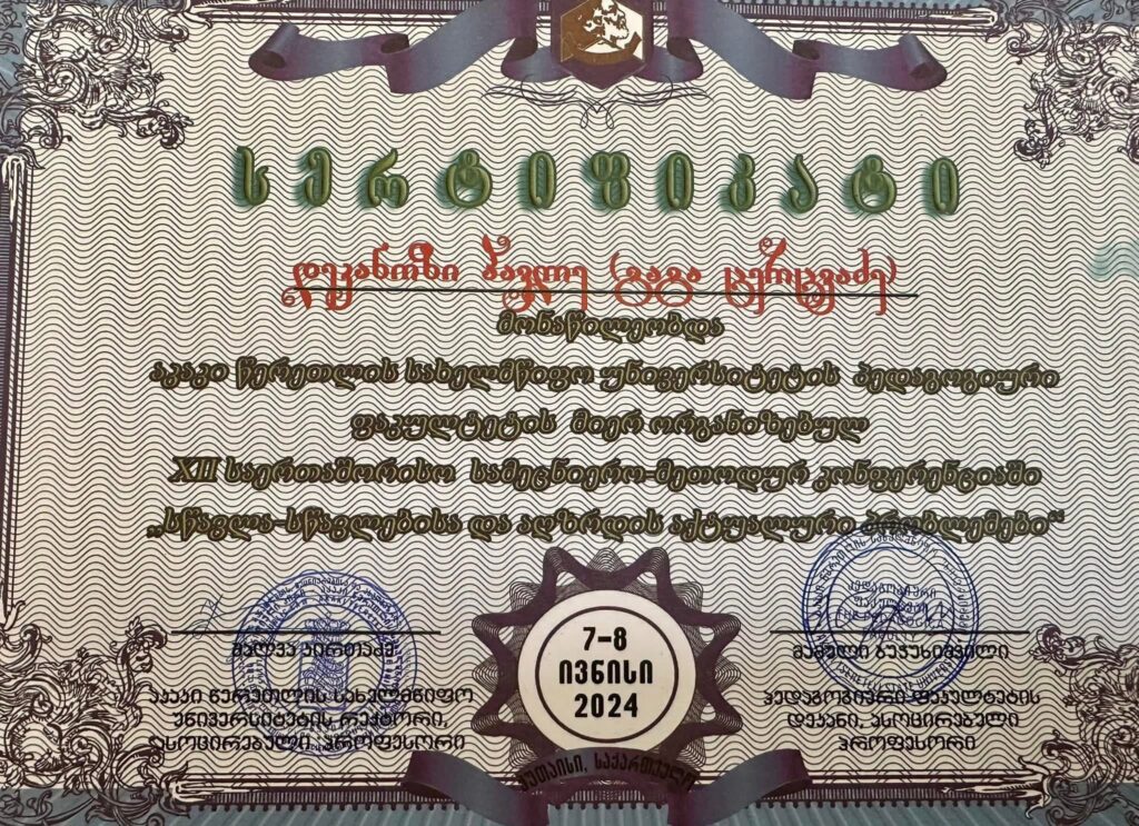 XII საერთაშორისო სამეცნიერო-მეთოდური კონფერენცია: ,,სწავლა-სწავლებისა და აღზრდის აქტუალური პრობლემები”, რომელშიც მონაწილეობას იღებდა თბილისის ივანე ჯავახიშვილის სახელობის სახელმწიფო უნივერსიტეტის, ფსიქოლოგიისა და განათლების მეცნიერებათა ფაკულტეტის დოქტორანტურის პირველი კურსის სტუდენტი, დეკანოზი პავლე (ერისკაცობაში გაგა ცერცვაძე), იგი კონფერენციაზე წარსდგა თემით: