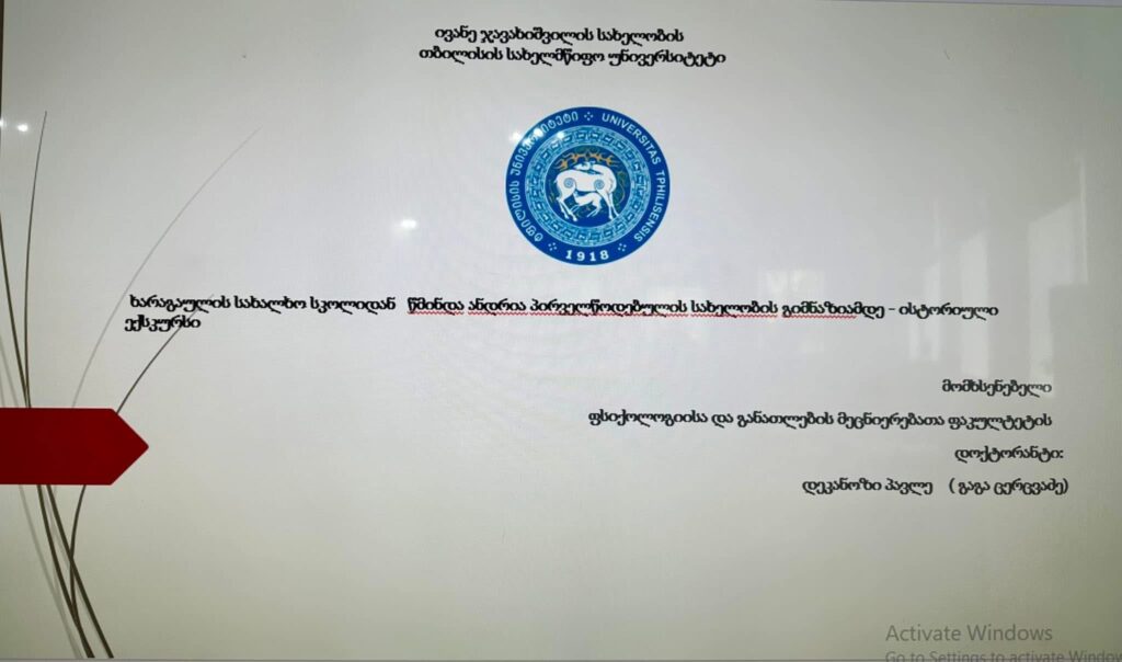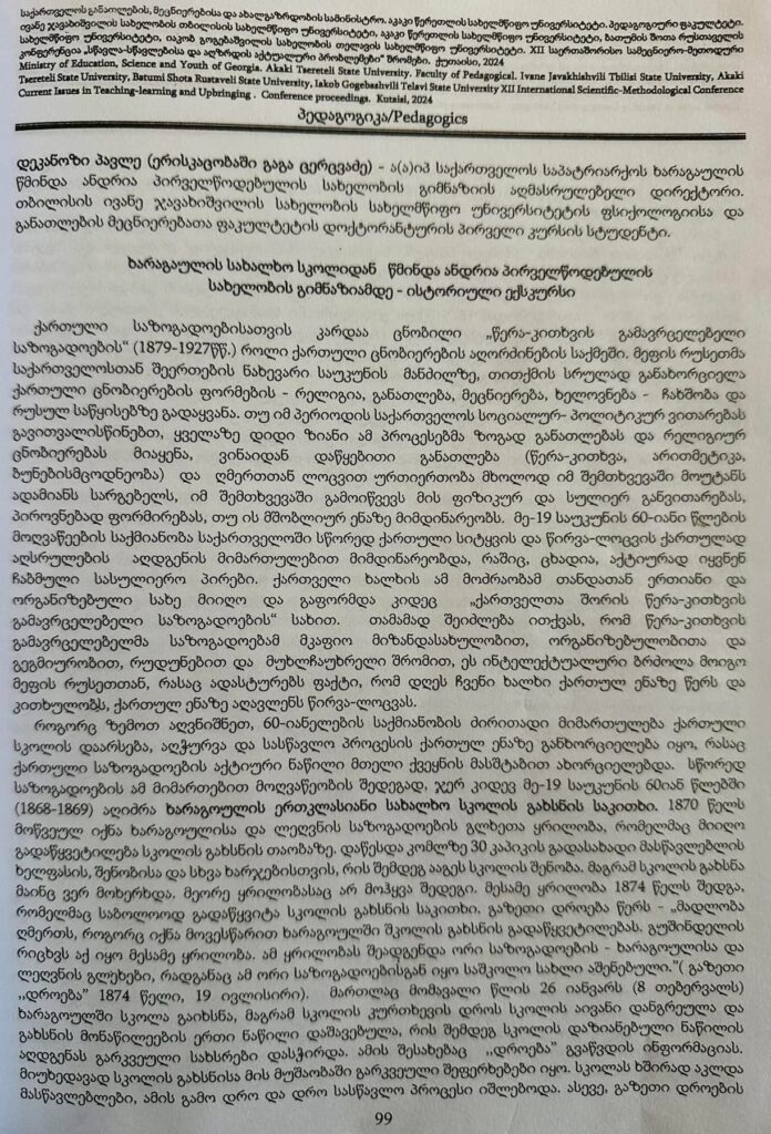 ,, ხარაგაულის სახალხო სკოლიდან წმინდა ანდრია პირველწოდებულის სახელობის გიმნაზიამდე-ისტორიული ექსკურსი”.