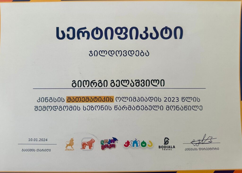 წარმატებული მოსწავლე🥇 ღმერთმა დალოცოს და გაახაროს ჩვენი გიმნაზიის უნიჭიერისი, წარმატებული და მიზანდასასახული, მე-4 კლასის მოსწავლე – გიორგი გელაშვილი (დამრიგებელი – ქალბატონი მედეა უჩიძე).